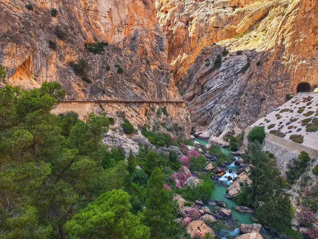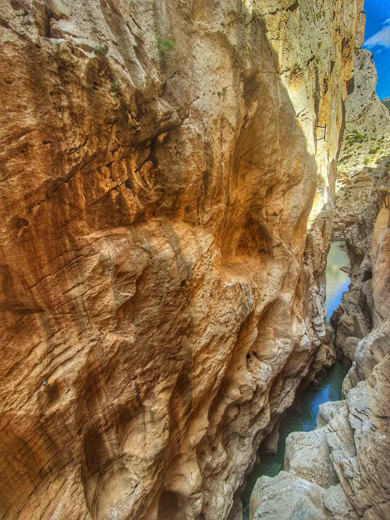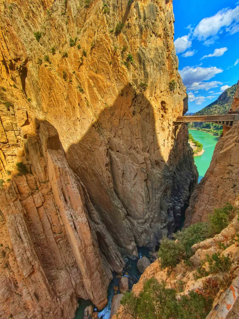 De route slingert door de steile kliffen van de Desfiladero de los Gaitanes, een indrukwekkende kloof die dieper en dieper lijkt te worden naarmate je verder wandelt. Het pad is in sommige delen opgehangen aan de rotswanden, met een glazen vloer waardoor je de diepte van de kloof kunt zien. Hoewel het hier erg druk kan zijn, is het zeer aan te raden een stop te maken als je in de regio bent! Tip: boek je tickets vooraf en vertrek lekker vroeg!