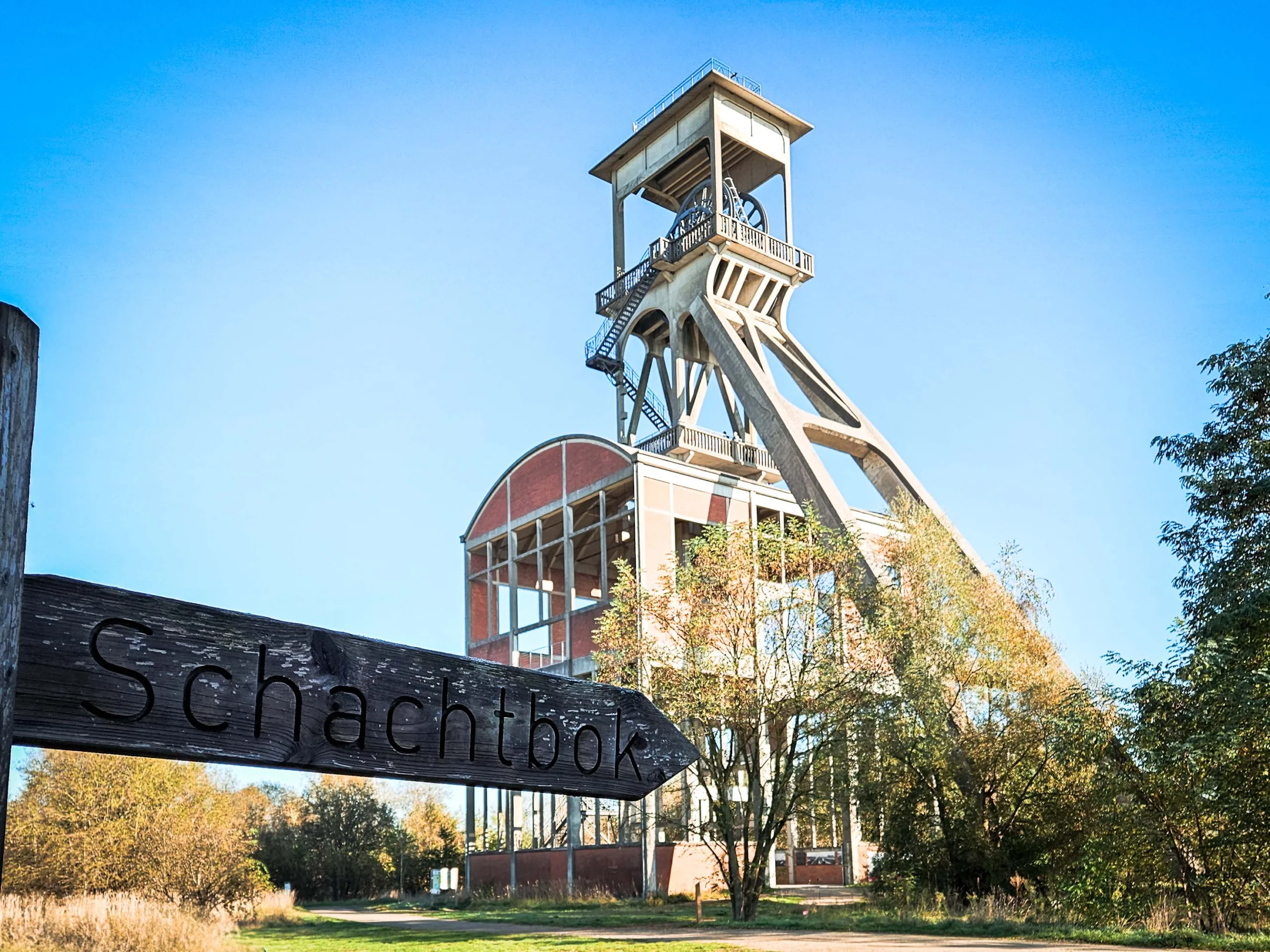 Het is nog vroeg wanneer ik langs het bezoekerscentrum naar de start van de route loop. Terwijl ik op mijn routekaart naar het exacte startpunt zoek, sta ik oog in oog met een metershoge schachtbok. Ooit daalden mijnwerkers hier honderden meters af in de aarde, op zoek naar het zwarte goud. Nu dient dit 24 meter hoge overblijfsel van het mijnverleden als uitkijkpunt over het natuurgebied. Ik klim naar boven en wordt getrakteerd op een adembenemend uitzicht over de omgeving.