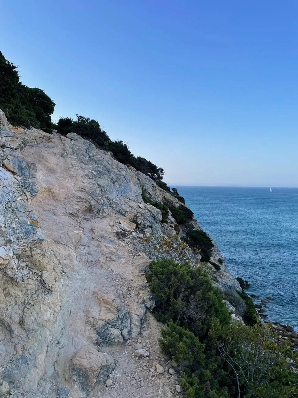 Het was echt een pittige vandaag, continu omhoog/omlaag. Het waren heel toffe geitenpaadjes. Ik kwam langs de mooiste mini strandjes en de hele route lang werd ik getrakteerd op krekelconcerten (echt niet normaal wat voor geluid die produceren).