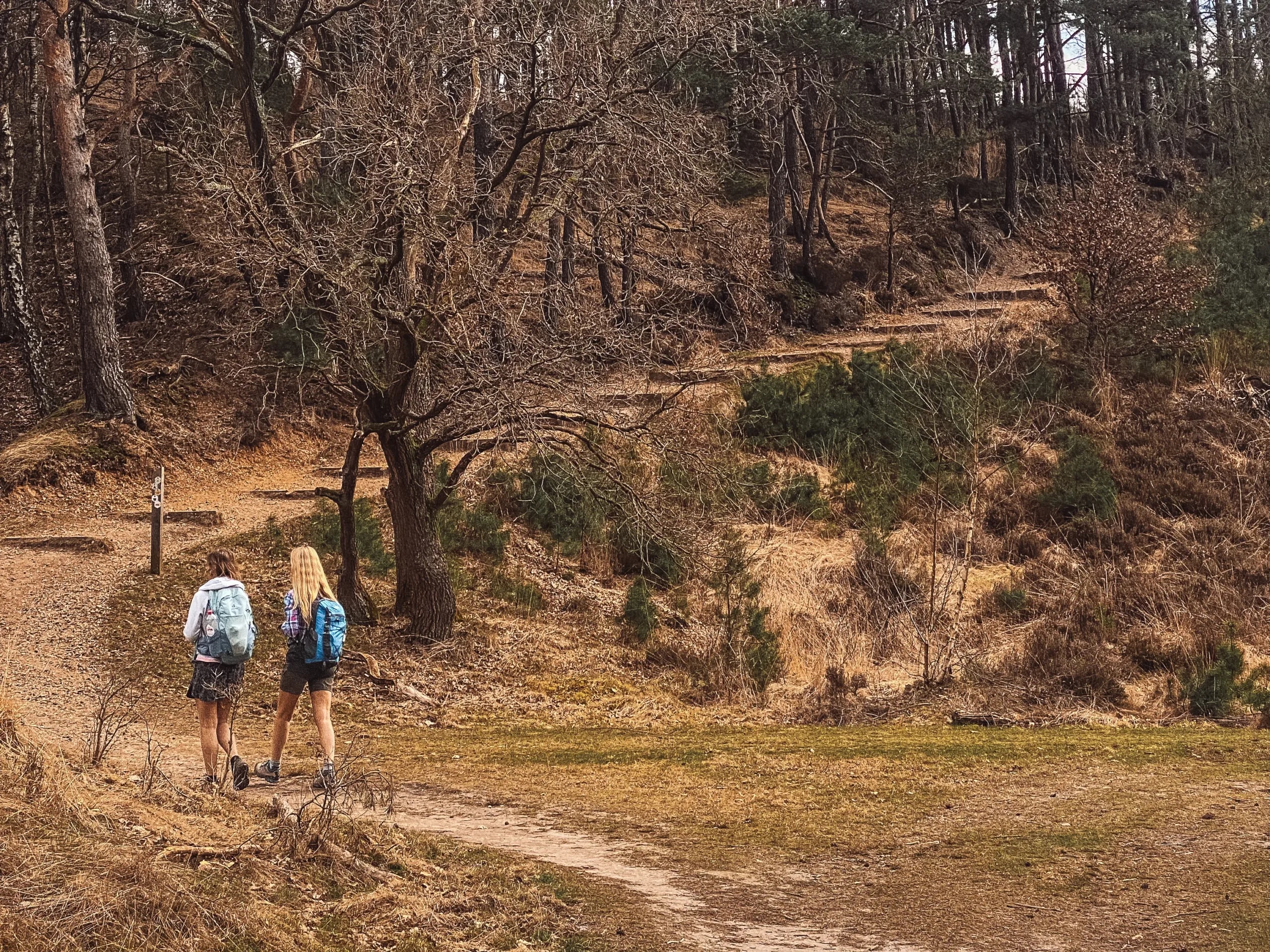 Twee dames hiken door Nationaal Park Hoge Kempen Twee dames hiken door Nationaal Park Hoge Kempen
